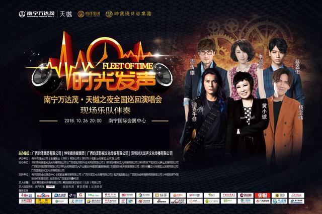 2018年10月26日晚19:00,萬達茂天樾之夜·時光發(fā)聲全國巡回演唱會"南寧站在會展中心前廣場萬人盛大啟幕。 圖/萬達茂天樾之夜.時光發(fā)聲全國巡回演唱會南寧站主海報 近兩萬名觀眾觀看了本次演唱會;迪克牛仔、黃小琥、楊宗緯、周傳雄、李翊君、蔡旻佑等群星震撼亮相,近20首歌曲傳唱全場;持續(xù)近2個半小時的演唱會,星光璀璨,大腕云集,以音樂的無窮魅力,嗨翻南寧,唱響世界!